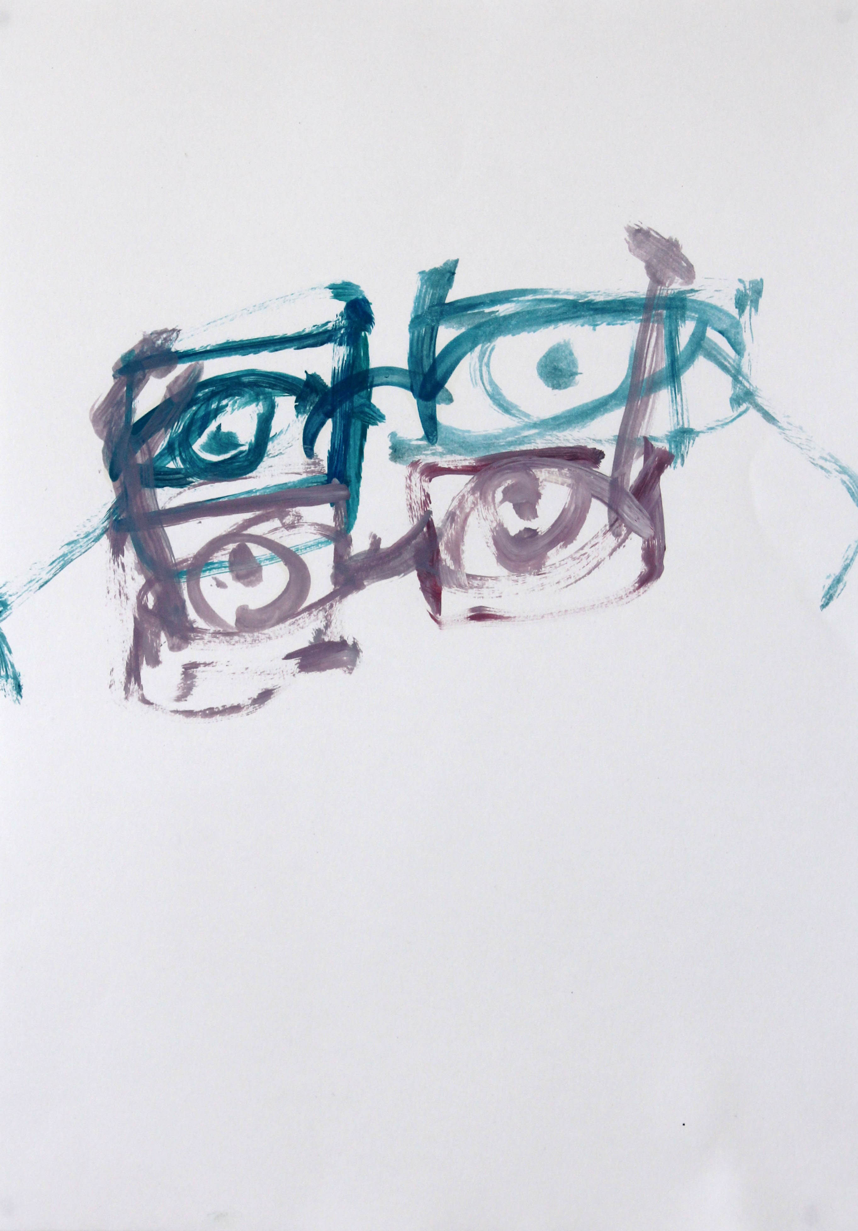 <i>Four-eyes,</i> 2013<br/>Acrylic on paper <br/> 42 x 29.5cm (16.5 x 11.5in) <i>Four-eyes,</i> 2014<br/>Oil on paper <br/> 29.5 x 42cm (11.5 x 16.5in) <i>Four-eyes,</i> 2014<br/>Oil on paper <br/> 29.5 x 42cm (11.5 x 16.5in) <i>Four-eyes,</i> 2014<br/>Oil on paper <br/> 29.5 x 42cm (11.5 x 16.5in) <i>Self-portrait as a Landslide,</i> 2013Acrylic and pencil on paper <br/> 42 x 29.5cm (16.5 x 11.5in) <i>e for Expression,</i> 2015<br/>Acrylic and pencil on paper <br/> 29.5 x 42cm (11.5 x 16.5in) <i>Self-Portrait Twice,</i> 2015<br/>Coloured pencils on paper 29.5 x 42cm (11.5 x 16.5in)